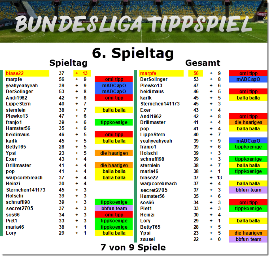 da beim tippspiel die aktuellen listen jetzt wirklich immer sehr schnell zum nachsehen sind